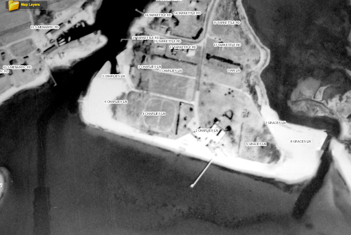 1978 ariel photo showing "6 Charlies Lane" is still a beach.